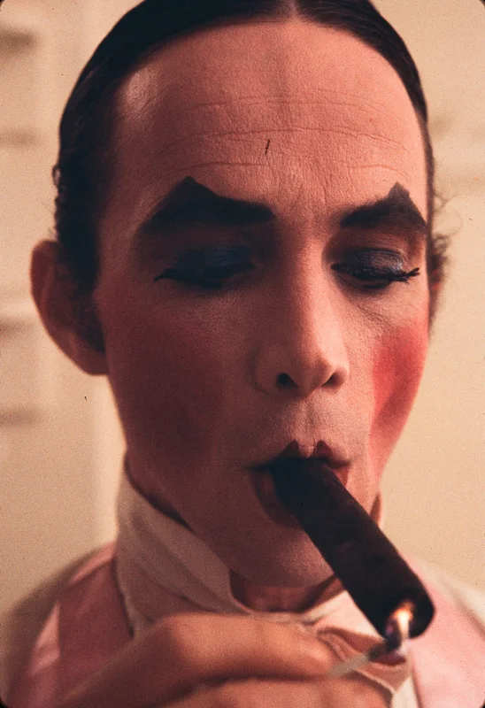Our friendship with Joel Grey began when Raymond had a one-man show of his color circus photos at the Limelight Gallery in Greenwich Village, NYC, in 1961. Joel, a photo buff, saw the show, loved it, and purchased a color photo of a dramatically made-up clown. The two became friends and as it was told to us, years laterJoel referred to that photo when he designed his make-up for his role as Master of Ceremonies in the original Cabaret on Broadway.
